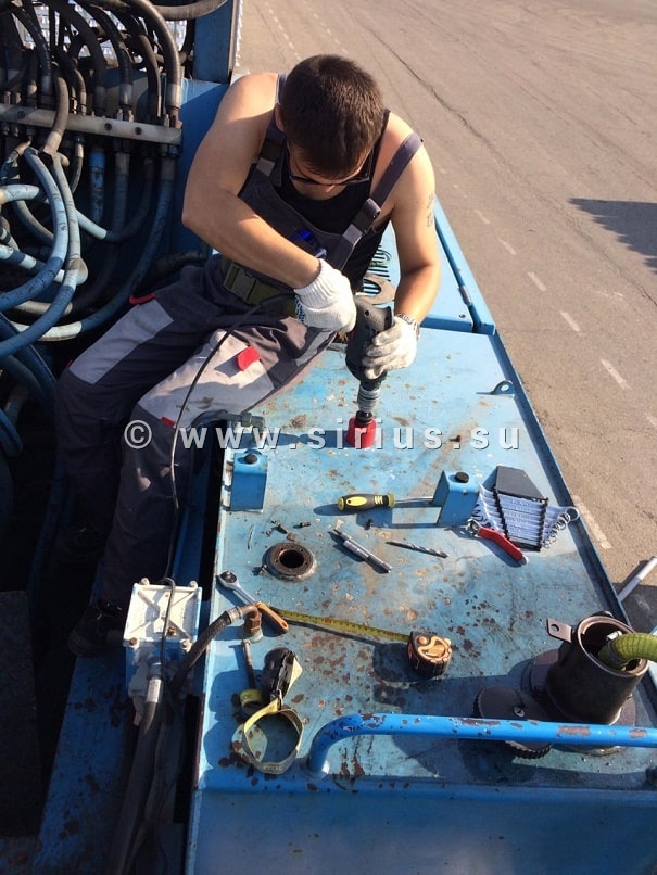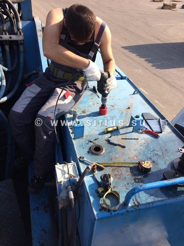 Дорога в темрюкский порт была долгой, утомительной, перегруженной зерновозами и забитой километровыми пробками. Ранний подъем - ребята выехали в 4 утра, 8 часов в пути чуть не выбили их из колеи, но времени на раскачку не было. Прибыв на место, они немедленно приступили к работе. Нужно было осмотреть и продиагностировать работу громадного «шагающего» крана, установить и тарировать топливное оборудование на портовый погрузчик. Работа была тяжелой. Хоть и стоял октябрь, краснодарское солнце палило нещадно. На выполнение поставленной задачи у ребят ушел весь день – работу они закончили уже затемно.